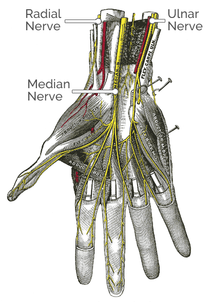 note: The median nerve passes through the carpal tunnel and its compression there is the cause of carpal tunnel syndrome.
